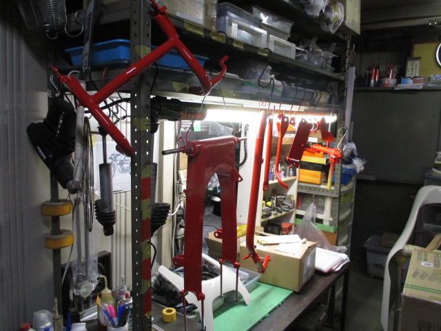 フレームにMAGNI赤が塗られました、良い色ですね。