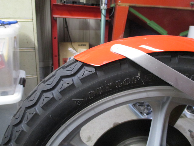 タイヤとのクリアランスがなくステーを長穴にしてようやく隙間ができました。